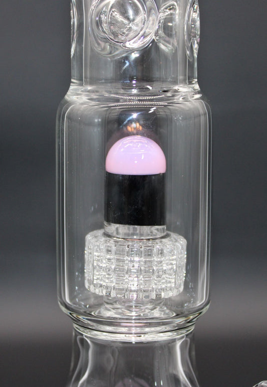 16 INCH DOUBLE CHAMBER PINK AND BLACK BEAKER TUBE WITH DISCO PERC